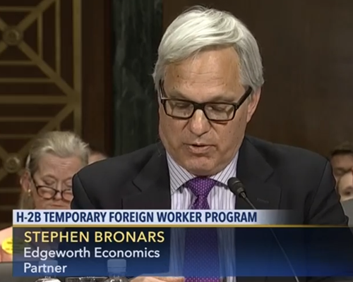 Edgeworth Economics Partner Dr. Stephen Bronars was called to testify before the Senate Subcommittee on Immigration and the National Interest regarding the economic impact of the H-2B Temporary Foreign Worker Program on the wages of US workers.